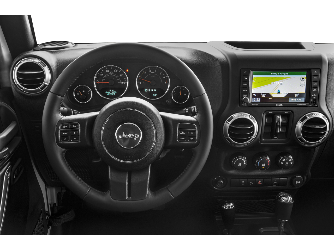 Inside, the premium leather-wrapped shift knob, silver interior accents, and the MOPAR Rock Rails (DISC) elevate the cabin's style and functionality. The heated front seats and automatic temperature control ensure your comfort, no matter the weather. The premium EVIC message center and the vehicle information center keep you informed and in control.