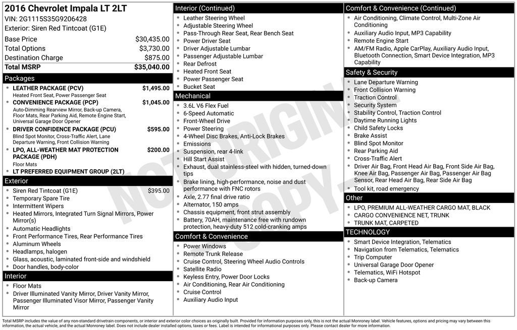 - Vehicle Name: Chevrolet Impala