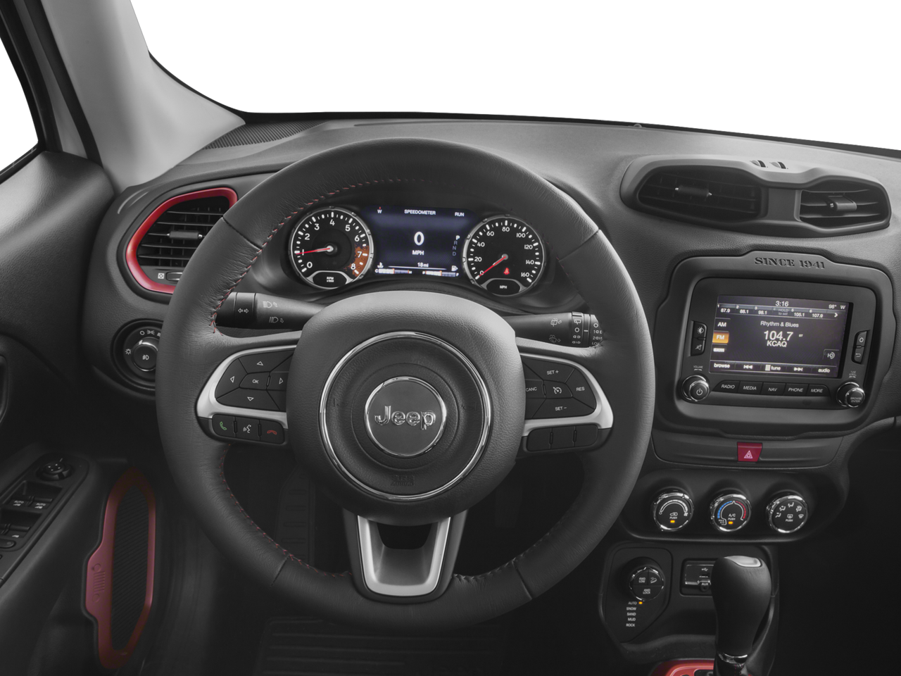 The Renegade Trailhawk's impressive list of features doesn't stop there. Enjoy the convenience of keyless entry and push-button start, as well as the added security of a remote start system. The 6.5 Uconnect touchscreen display provides seamless integration of your smartphone, with features like GPS navigation, HD radio, and SiriusXM traffic and travel link services.
