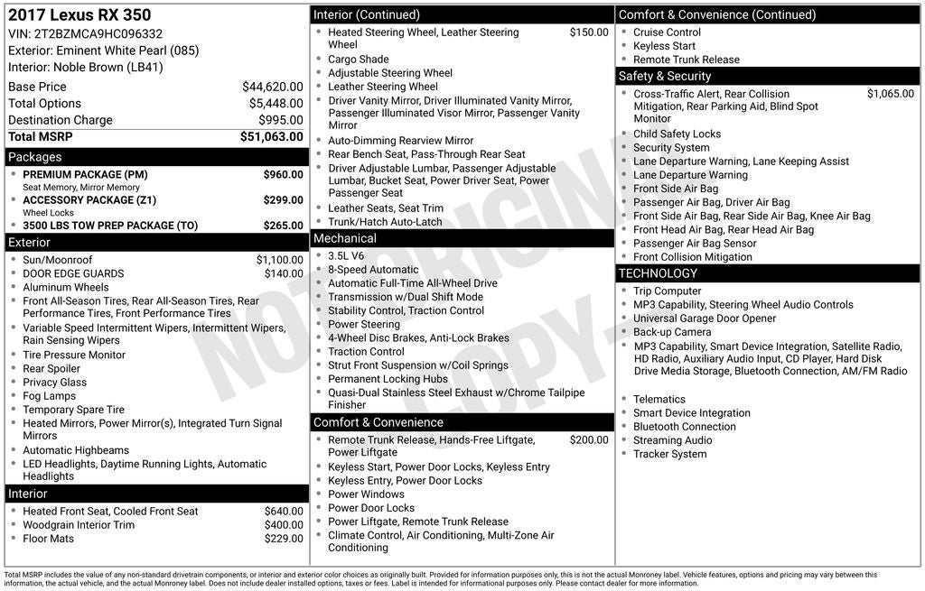 We invite you to experience the exceptional 2017 Lexus RX 350 for yourself. Schedule a test drive today and discover the true meaning of luxury and performance.