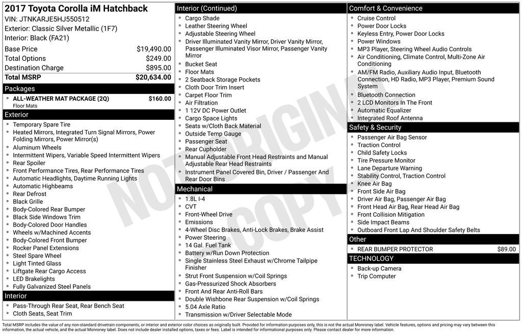 Whether commuting, running errands, or embarking on a weekend adventure, this 2017 Toyota Corolla iM Base is the versatile companion you've been searching for. Experience the perfect blend of style, technology, and practicality by scheduling a test drive today.