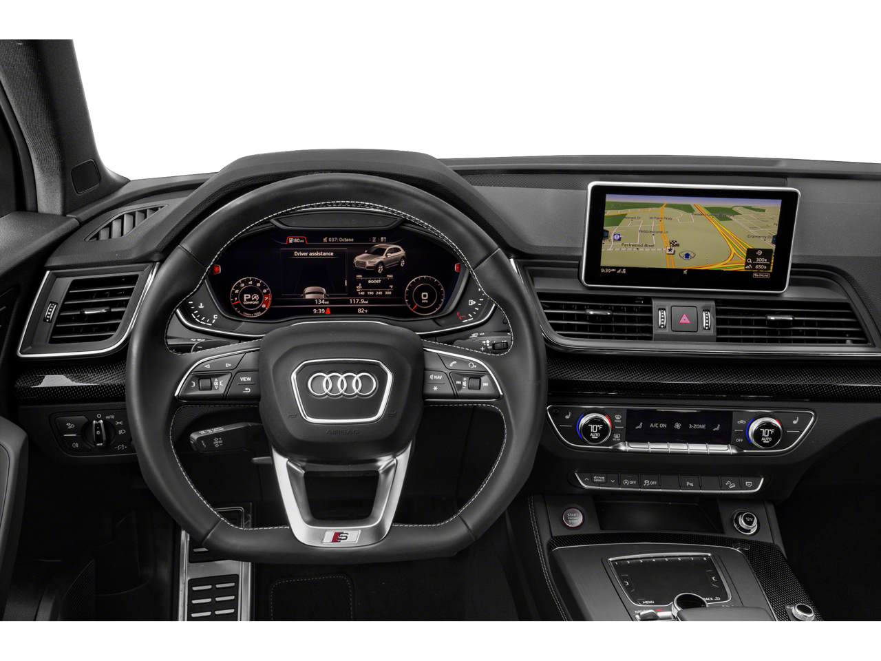 Beneath the sleek exterior, the 3.0L TFSI engine and 8-Speed Automatic with Tiptronic quattro drivetrain deliver exhilarating performance, seamlessly blending power and precision. The Audi Virtual Cockpit, Audi Phone Box, and Audi Connect PRIME & PLUS features keep you connected and in control, while the Audi Advanced Key, Heated Steering Wheel, and Heated Rear Seats ensure your comfort in any weather.