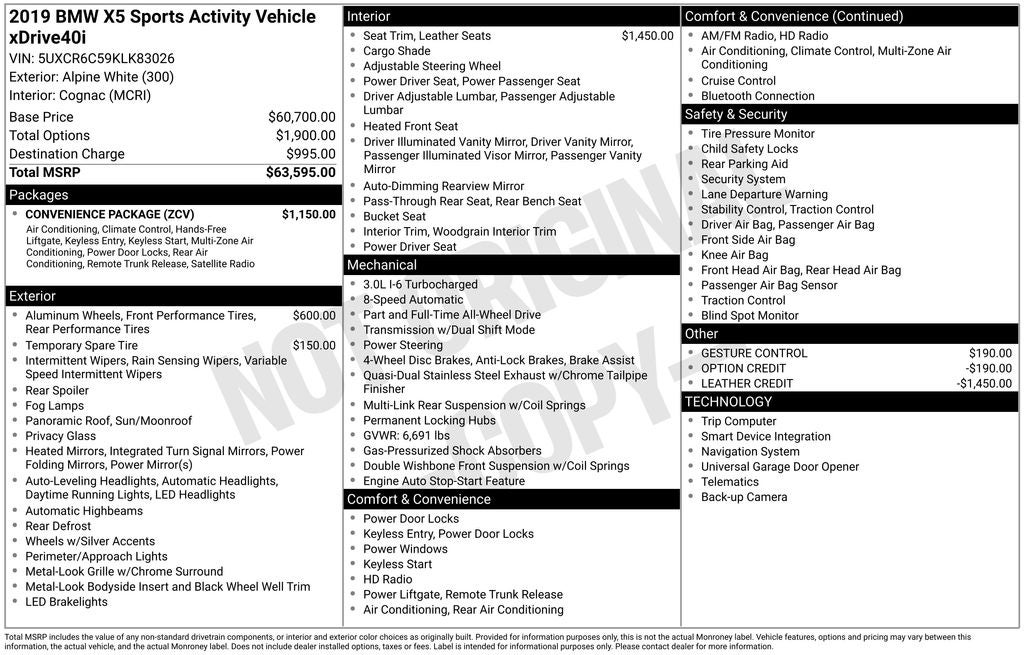 Experience the perfect balance of performance, style, and technology in this 2019 BMW X5 xDrive40i. Visit our showroom today and let us demonstrate how this exceptional SUV can elevate your driving experience.