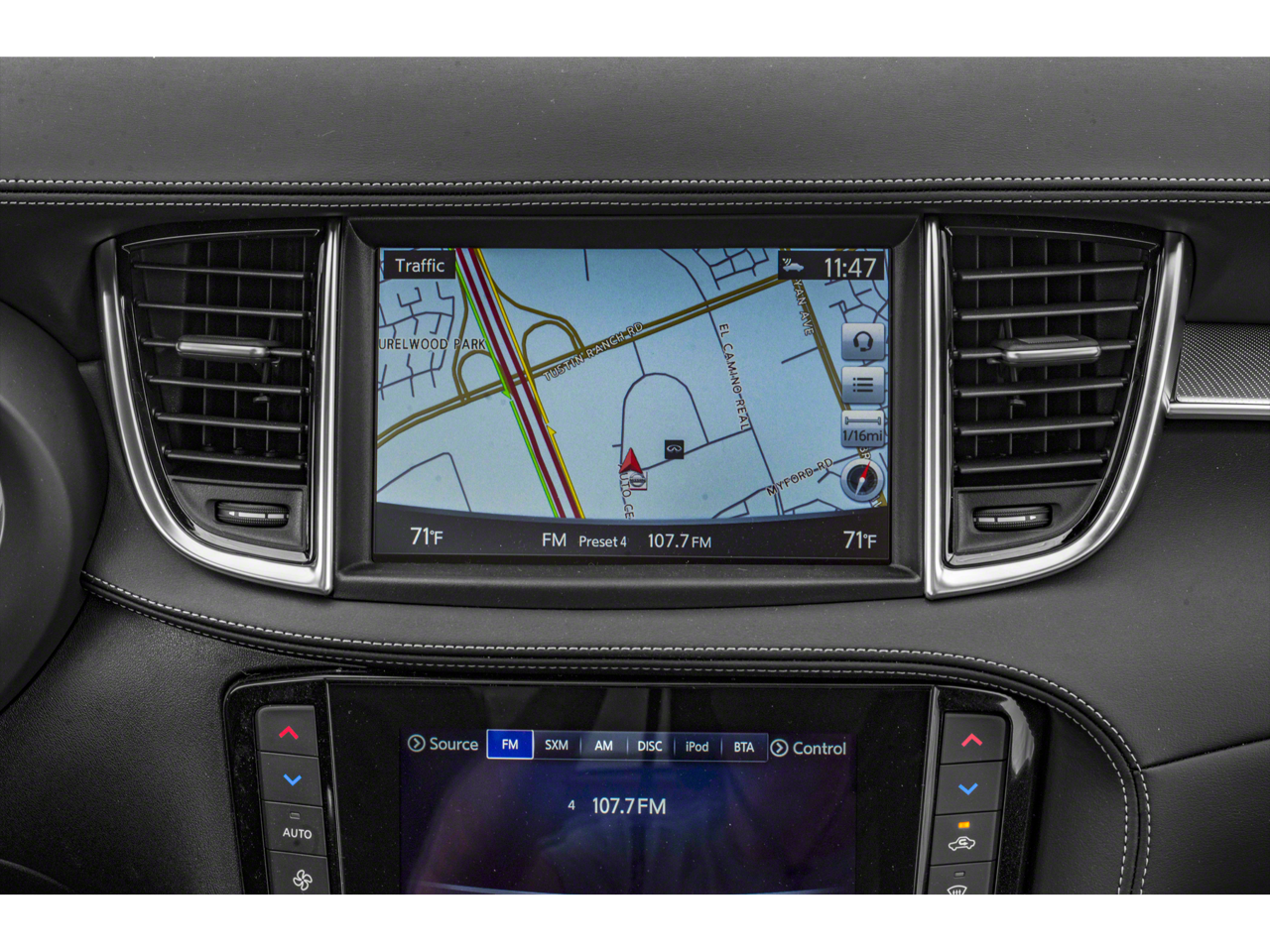 - Radio: AM/FM/CD Audio System -inc: 6-speaker w/4 USBs, INFINITI InTouch dual display system w/upper 8" and lower 7" VGA LCD touch screens, HD Radio, SiriusXM satellite radio w/90-day complimentary trial, INFINITI voice recognition and SiriusXM Travel Link w/4-year complimentary trial access to weather, fuel prices, stocks, sports and movie times