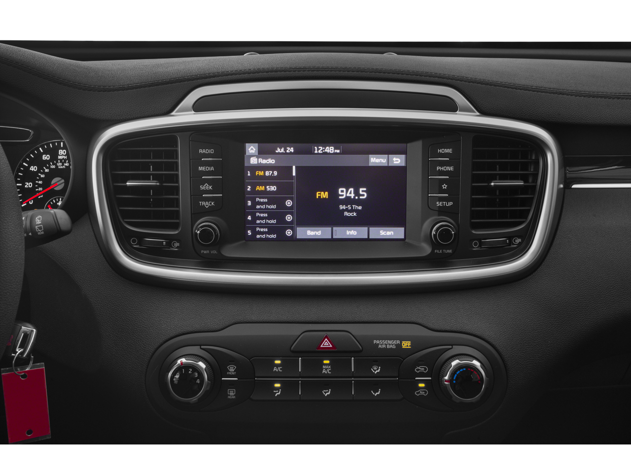 The Sorento's spacious interior and flexible seating configuration make it an ideal choice for families or those with active lifestyles. With seating for up to 7 passengers, this SUV offers ample room for passengers and cargo alike. The LX Convenience Package adds a wealth of premium features, including a 7-inch touchscreen infotainment system with Android Auto, Apple CarPlay, and SiriusXM, as well as a rear-camera display and Bluetooth® connectivity.