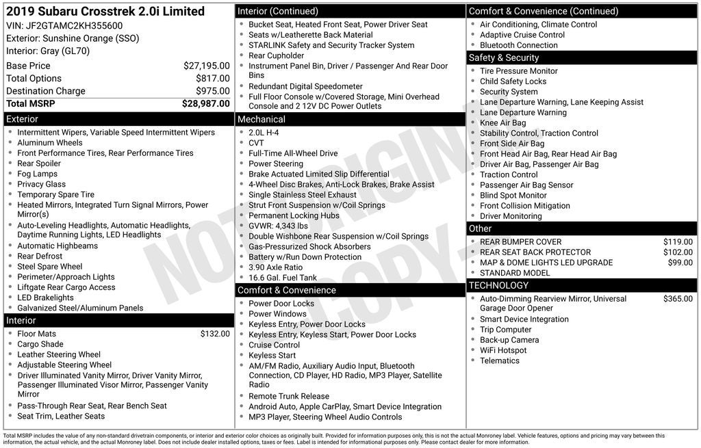 - Vehicle Name: Subaru Crosstrek