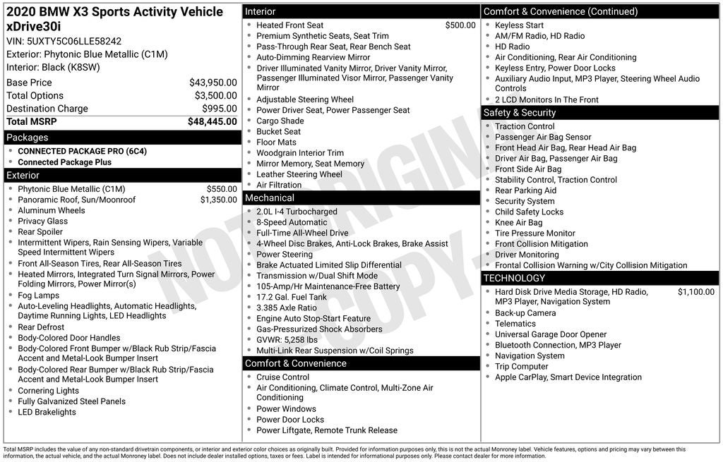 Whether you're embarking on a long road trip or navigating the daily commute, this 2020 BMW X3 xDrive30i is the perfect companion. Discover the exceptional craftsmanship, cutting-edge technology, and dynamic performance that make this SUV a true standout in its class.