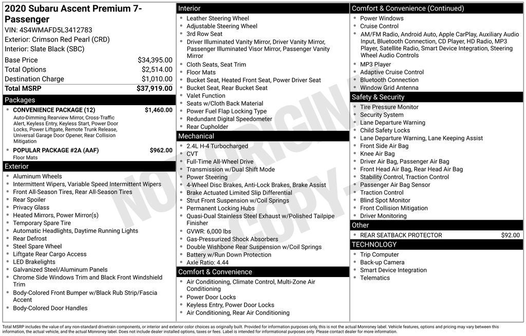 - Vehicle Name: Subaru Ascent