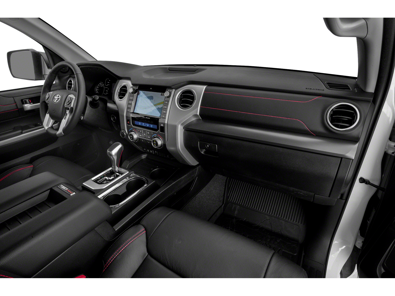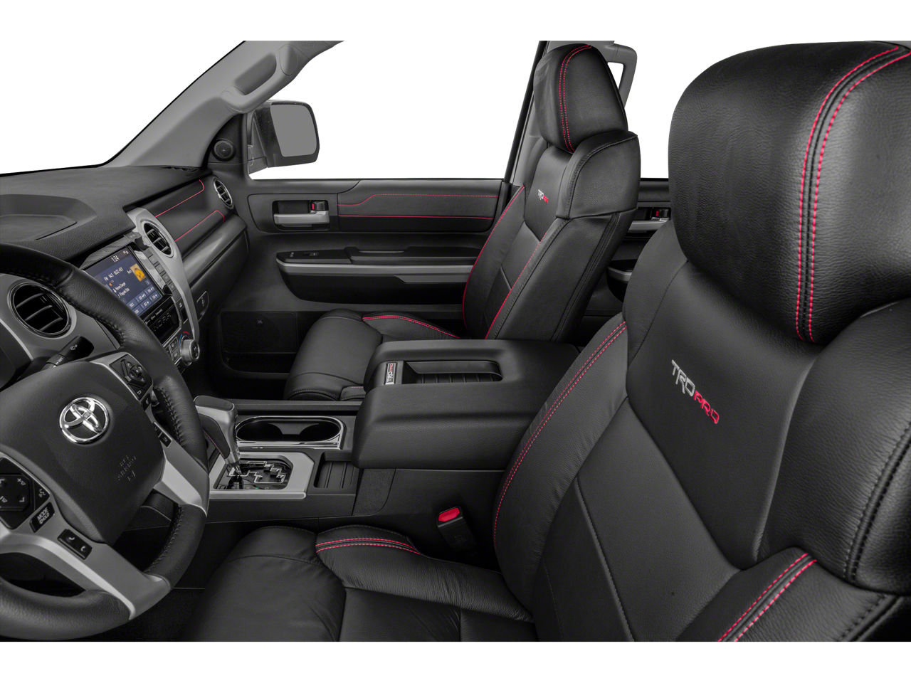 - Front Bucket Seats w/TRD Pro Logos -inc: 10-way power-adjustable driver's seat and 6-way power-adjustable front passenger seat and red stitching accents