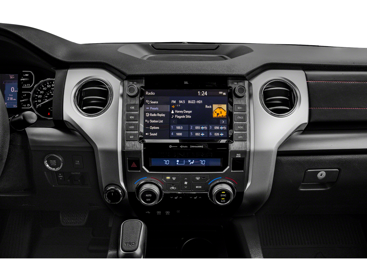 - Radio: Premium JBL Audio w/Dynamic Navigation -inc: 12 speakers including subwoofer and amplifier, 8" touch-screen display, AM/FM/HD Radio, Android Auto, Apple CarPlay, Amazon Alexa compatible, USB media port, 2 USB charge ports, dynamic navigation w/up to 3-year trial of dynamic POI search and dynamic voice recognition, Bluetooth® hands-free phone capability w/music streaming and destination assist w/1-year trial and 24/7 live agent assistance to locate your next destination