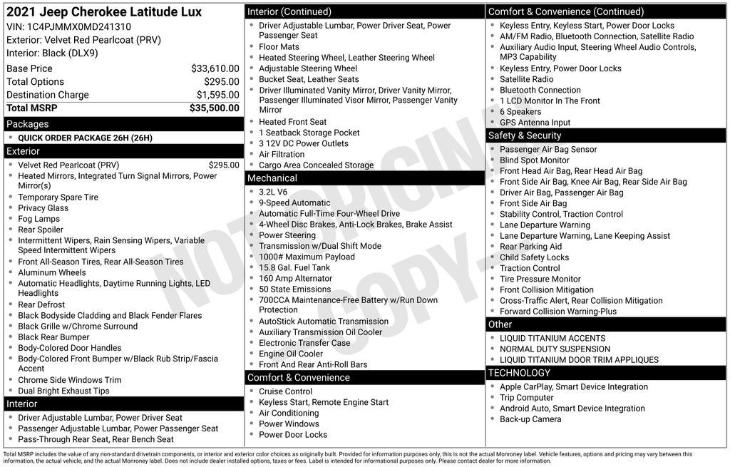 Experience the exceptional craftsmanship and capability of the 2021 Jeep Cherokee Latitude Lux. Visit our showroom today and let our knowledgeable sales team guide you through a test drive. We're confident this SUV will exceed your expectations and become your next trusted companion on the road.