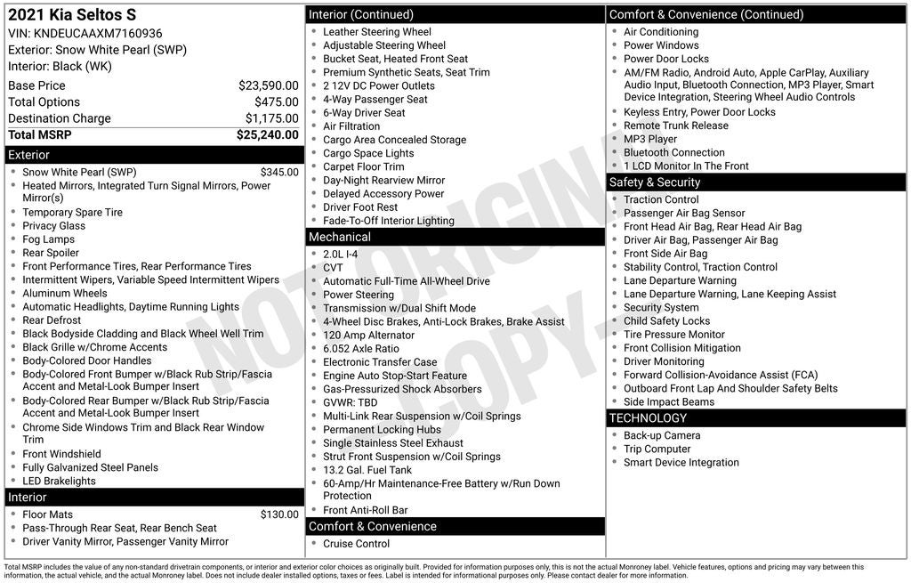 - Vehicle Name: Kia Seltos