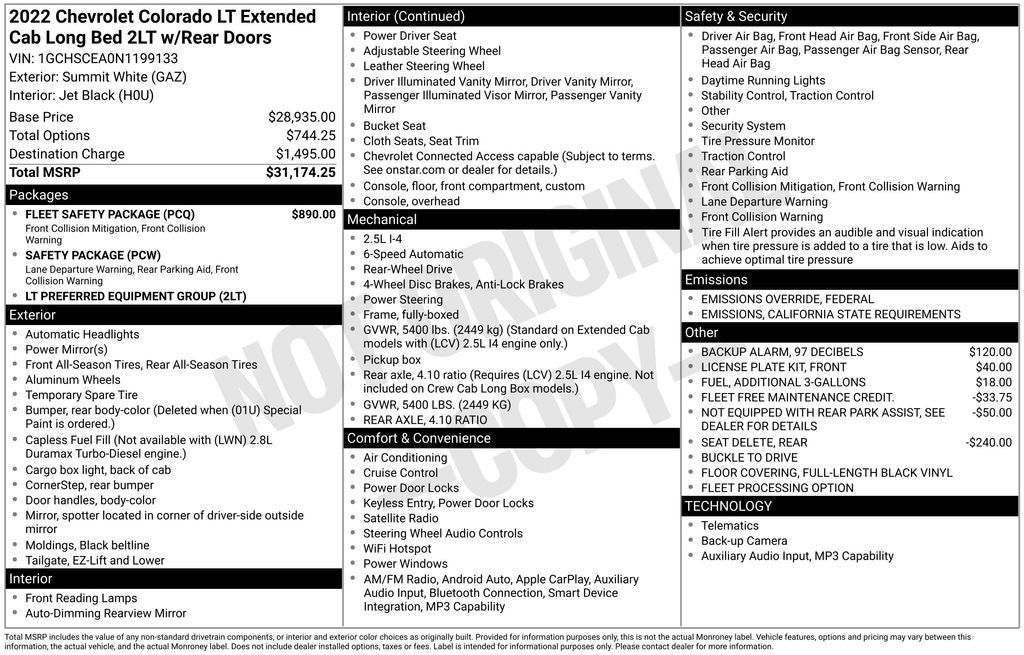 - Vehicle Name: Chevrolet Colorado