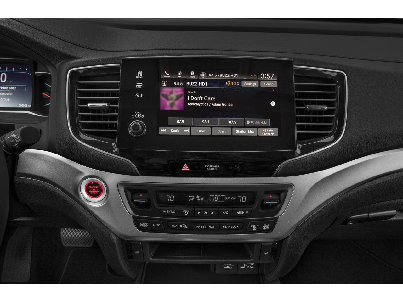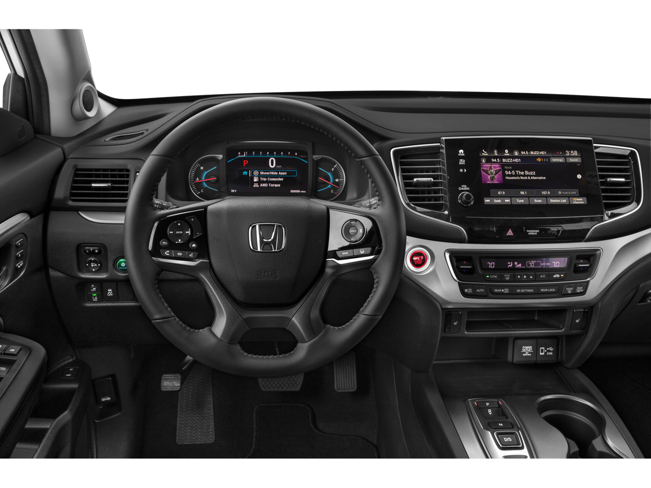 - Radio: 215-Watt Audio System -inc: 7 speakers, subwoofer, Bluetooth HandsFreeLink and streaming audio, MP3/auxiliary input jack, Radio Data System (RDS), Speed-sensitive Volume Compensation (SVC), 2.5-amp USB charging port (1 port in center console/2 ports on 2nd-row), 8" display audio w/high-resolution touch-screen and customizable feature settings, HondaLink, CabinControl remote compatibility, Apple CarPlay integration, Android Auto integration, SMS text message function, SiriusXM (SiriusXM requires a subscription after any trial period, If you decide to continue your SiriusXM service at the end of your trial subscription, the plan you choose will automatically renew and bill at then-current rates until you call SiriusXM at 1-866-635-2349 to cancel, See our customer agreement for complete terms at www.siriusxm.com, Fees and programming subject to change, Available in the 48 contiguous United States and D.C, SiriusXM and all related marks and logos are trademarks of SiriusXM Radio Inc.), HD radio and 2.5-amp USB smartphone/audio interface (1 port in front console)