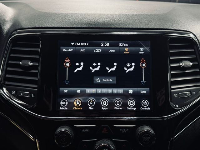 Slip into the driver's seat and experience the comfort of the leather-trimmed bucket seats. Stay connected with the Uconnect 4C Nav system, featuring an 8.4-inch display and seamless integration with your smartphone. Enjoy the convenience of the heated steering wheel, dual-zone automatic climate control, and the panoramic moon roof that floods the cabin with natural light.