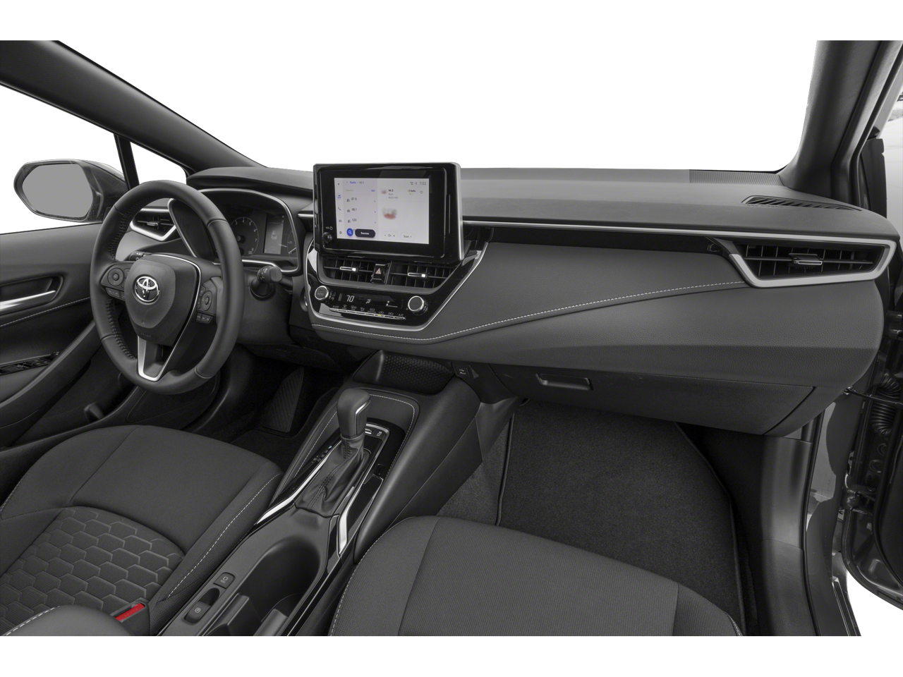 Blending style and substance, the Corolla Hatchback SE's sleek exterior design features a sporty spoiler, body-color bumpers, and distinctive 16 alloy wheels that command attention wherever you go. The interior boasts premium fabric seating, a leather-wrapped steering wheel, and a host of convenience features that elevate your driving experience.