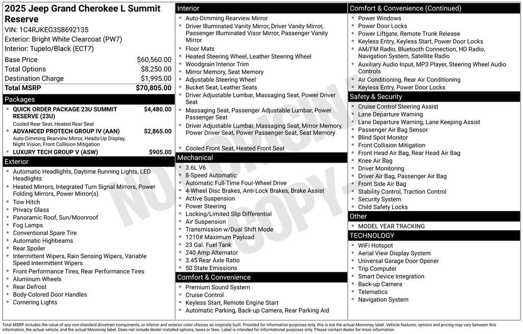 2025 Jeep Grand Cherokee L Summit RESERVE PRO TECH IV PKG NIGHT VISION MOONROOF HU D